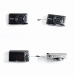 Uma câmera clássica, compacta digital dos anos 2000, capaz de capturar fotos e vídeos.